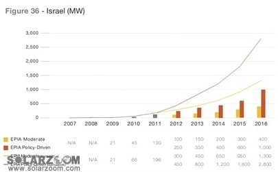 自從2008年采用了上網(wǎng)電價(jià),以色列的并網(wǎng)發(fā)電市場(chǎng)一直在逐漸發(fā)展,其中大約130MW的光伏系統在去年接入電網(wǎng)。政府已設立一個(gè)目標,即到2020年10%的電力要來(lái)自可再生能源。在中期,政府計劃把300MW的大型光伏系統(從51kW到12MW)接到電網(wǎng),可能進(jìn)一步增加到500MW。鑒于其面積相對較小,以色列有很好的光伏發(fā)展前景,太陽(yáng)能將是以色列擺脫依賴(lài)、實(shí)現能源獨立的一個(gè)大好機會(huì )。