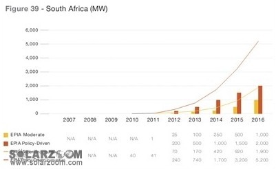 隨著(zhù)日益增加的電力需求和豐富的太陽(yáng)能資源,南非常常被視為最具吸引力的新興市場(chǎng)。但直到現在其光伏市場(chǎng)份額仍然較低,大多數在建光伏項目重點(diǎn)集中在大型公益設施方面。2012年一些大型項目很可能會(huì )啟動(dòng),特別是50MW的光伏集中建設項目(CPV)。到2014年,在“可再生能源電力采購計劃(REIPP)”的激勵下,政府預計將至少安裝1450MW的光伏系統。該計劃是基于招標基礎下,且考慮到社會(huì )經(jīng)濟發(fā)展因素而建立的。對于不超過(guò)5MW的小型系統而言,政府打算出臺一個(gè)新的獨立計劃,但到目前為止沒(méi)有公布任何消息。南非市場(chǎng)的啟動(dòng)將使其在2016年達到2GW的裝機量。但有一些問(wèn)題尚待解決,特別是融資成本對競標者來(lái)說(shuō)是一個(gè)重大問(wèn)題。