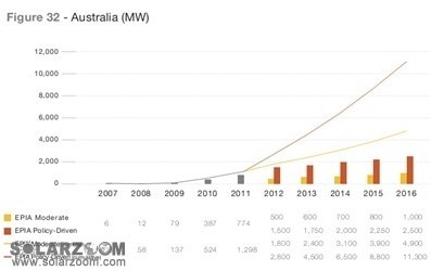 澳大利亞各種各樣的光伏支持方案使其成為一個(gè)復雜的市場(chǎng),這也使得該市場(chǎng)高度不穩定,上網(wǎng)補貼經(jīng)常被修改,但是這種支持已經(jīng)導致2011年的光伏市場(chǎng)安裝達774MW??紤]到澳大利亞的國家規模和市場(chǎng)開(kāi)發(fā)速度,無(wú)疑這種發(fā)展是不可持續的。有別于許多歐洲國家,澳大利亞上網(wǎng)電價(jià)是以州為基礎的。這使得各州之間的政策方案有很大的差異??焖僭鲩L(cháng)助長(cháng)了日益反對光伏的呼聲,同時(shí)政策制定者也持懷疑態(tài)度。有一些利益相關(guān)者正在推動(dòng)一種全國性的適合替換所有州上網(wǎng)電價(jià)的方案,以便平行開(kāi)發(fā)該國光伏市場(chǎng)。與此同時(shí),一些州已經(jīng)考慮逐步淘汰財政激勵政策。新南威爾士州開(kāi)始考慮追溯性降低上網(wǎng)電價(jià),而其他州則是僅僅改變定價(jià)標準。但所有這一切都與確保未來(lái)幾年市場(chǎng)可持續發(fā)展的必要措施背道而馳。因此,該市場(chǎng)是非常復雜的。在短期內,澳大利亞全國統一的上網(wǎng)電價(jià)不太可能實(shí)現,從而可能暫時(shí)減緩市場(chǎng)發(fā)展。