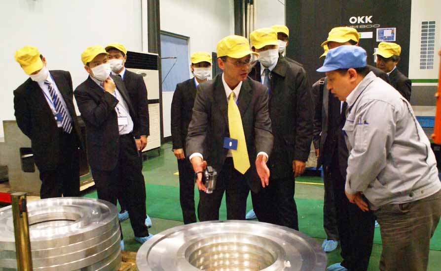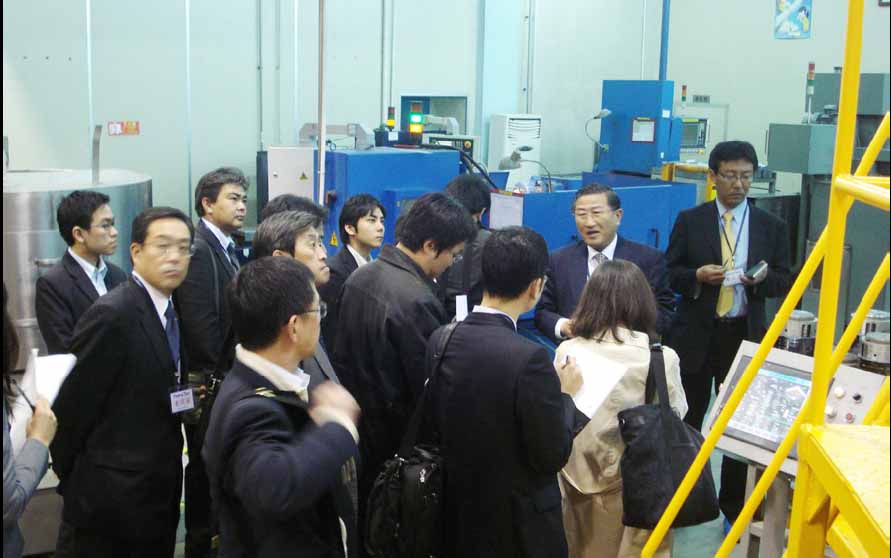 4月12-13由FerroTec(總社)社長(cháng)室若木啓男室長(cháng)陪同的日本金融企業(yè)投資家代表團一行前來(lái)FT(中國)杭州大和、上海申和工廠(chǎng)參觀(guān)考察。來(lái)訪(fǎng)期間FT(中國)賀賢漢總裁親自陪同參觀(guān)和設宴招待,郭建岳常務(wù)副總、戴明常務(wù)副總、董小平副總、毛立新副總、倪希健副總、包有為本部長(cháng)、周勇等分別代表杭州、上海二地公司領(lǐng)導熱情接待及陪同參觀(guān)。