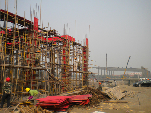 為了實(shí)現春節前完成廠(chǎng)房結構、建筑的建造;2011年三月底全面竣工的目標。自九月中旬以來(lái)施工各方精心組織,投入大量的人力、物力,動(dòng)用大量的施工機械,首先完成三萬(wàn)余方的土方回填。二臺打樁機械連續運轉,按時(shí)完成打樁任務(wù)。經(jīng)高應變、低應變和靜載測試符合設計要求。三幢施工臨時(shí)用房排布在場(chǎng)地東側,滿(mǎn)足了200余位施工人員的住宿與辦公。50畝土地的圍墻與柵欄按時(shí)完畢。廠(chǎng)房的基礎承臺已全部完成基礎混凝土澆搗,基礎墻砌筑到±0.000。部分鋼結構梁、柱材料構件已進(jìn)場(chǎng),本周已開(kāi)始上部鋼結構的吊裝與混凝土結構部分的支模與鋼筋綁扎。一個(gè)嶄新的工廠(chǎng)雛形即將顯現在江東工地。