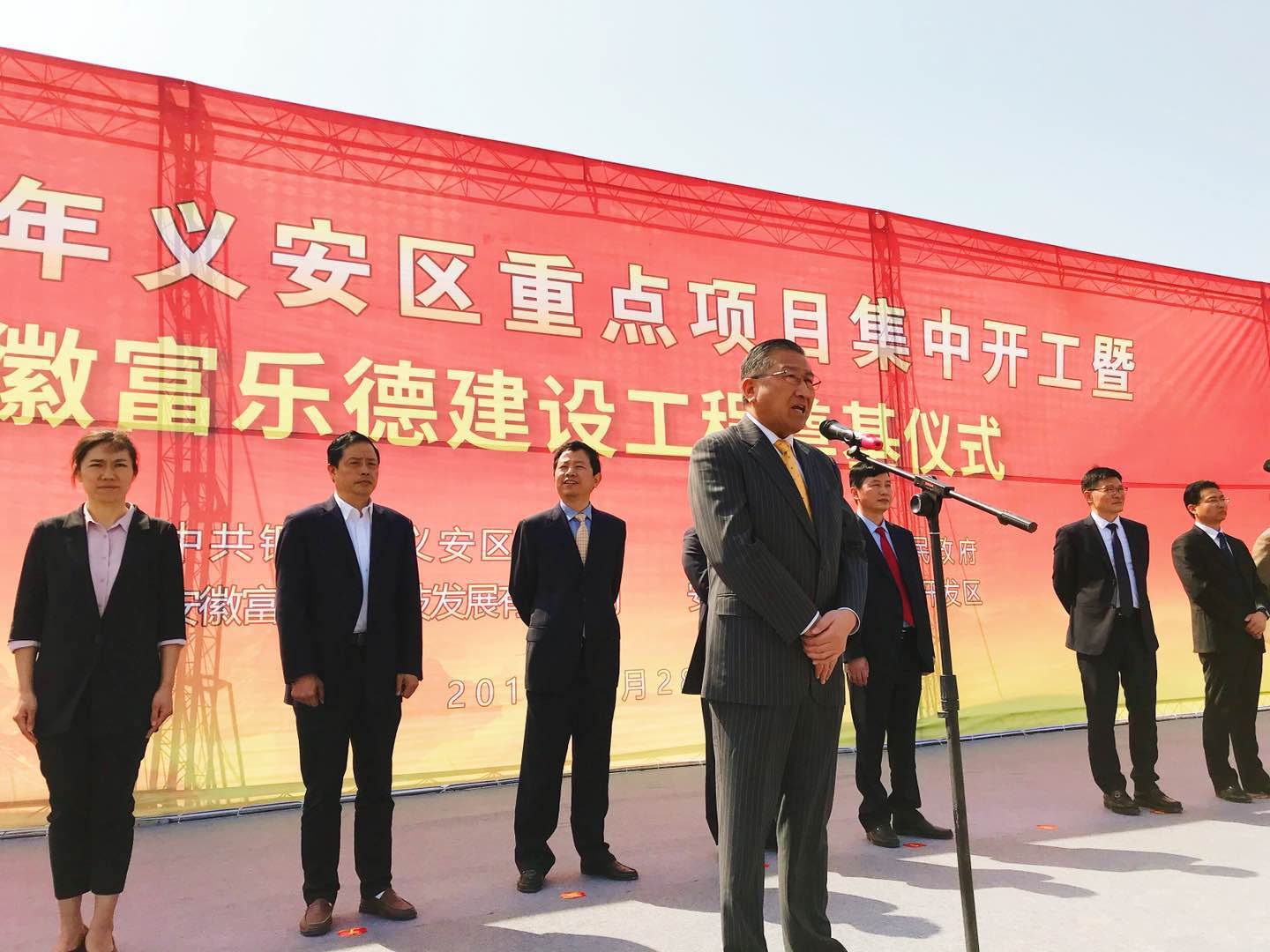 3月28日上午10:18時(shí),銅陵義安區重點(diǎn)項目集中開(kāi)工暨安徽富樂(lè )德建設工程奠基儀式在義安經(jīng)濟開(kāi)發(fā)區隆重舉行。銅陵市常務(wù)副市長(cháng)程雙林、副市長(cháng)黃化鋒,銅陵義安區委書(shū)記汪發(fā)進(jìn)、義安區常務(wù)副區長(cháng)聞風(fēng)、市發(fā)改委、市經(jīng)信委、市招商局、市規劃局等領(lǐng)導及日本磁性流體技術(shù)控股有限公司取締役副社長(cháng)兼Ferrotec中國區總裁賀賢漢、日本磁性流體技術(shù)控股有限公司取締役副社長(cháng)山村 丈出席奠基儀式。銅陵義安區委書(shū)記汪發(fā)進(jìn)主持儀式,常務(wù)副區長(cháng)聞風(fēng)介紹集中開(kāi)工項目情況,賀賢漢總裁、黃化鋒副市長(cháng)分別代表企業(yè)和銅陵市政府致辭,常務(wù)副市長(cháng)程雙林宣布項目開(kāi)工。 隨后主席臺全體領(lǐng)導為安徽富樂(lè )德科技發(fā)展股份有限公司建設工程項目奠基,儀式結束后,賀賢漢總裁接受了當地媒體采訪(fǎng)。