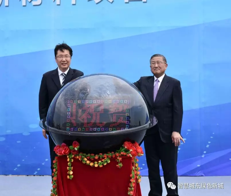 王旭東市長(cháng)和賀賢漢董事長(cháng)共同按動(dòng)啟動(dòng)球