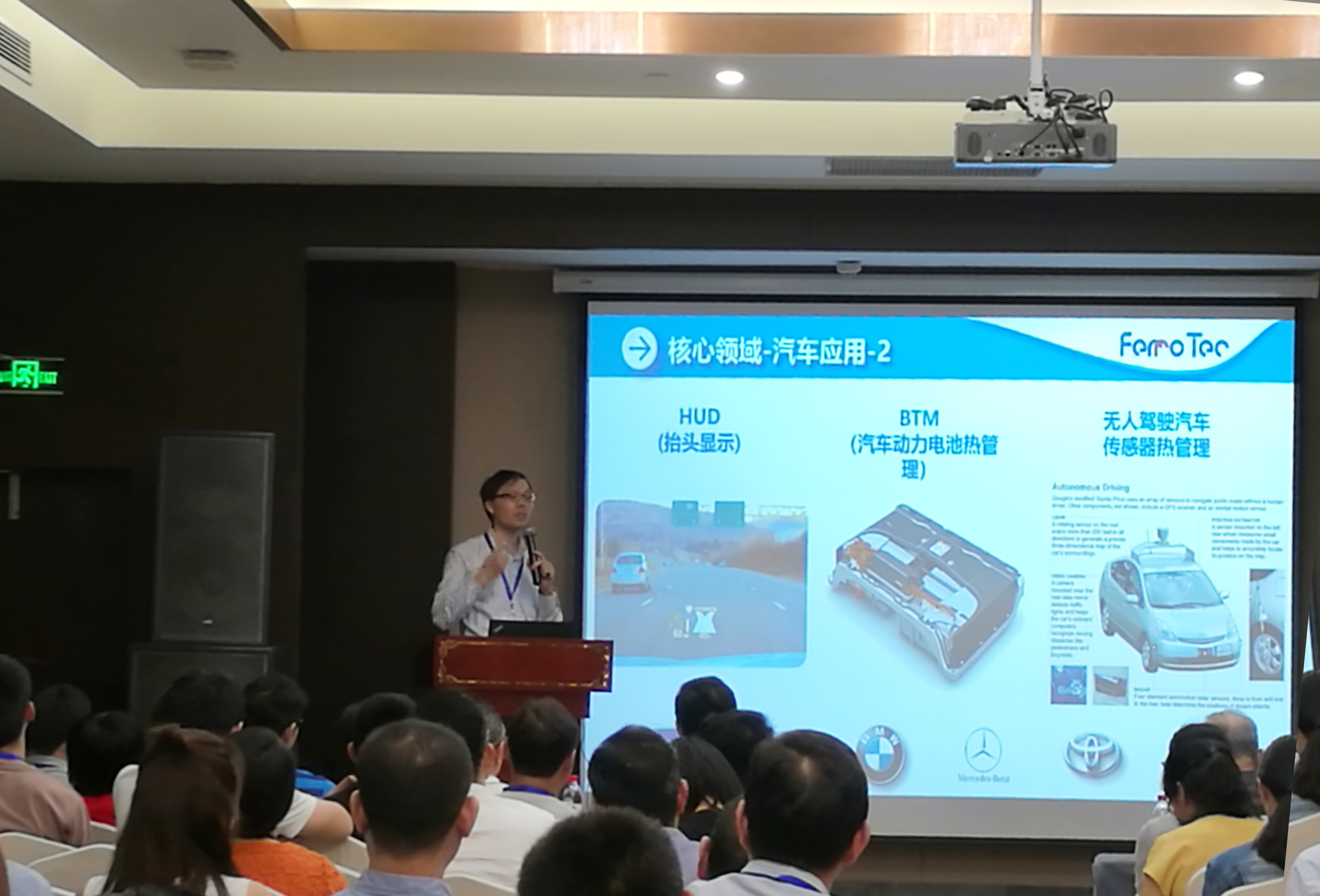 FerroTec作為大會(huì )企業(yè)界代表,特邀阮煒總經(jīng)理代表TEC器件及應用的生產(chǎn)廠(chǎng)家做TEC產(chǎn)品應用的專(zhuān)題報告,阮煒總經(jīng)理對熱電半導體在各工業(yè)領(lǐng)域中的應用介紹做了詳細地解說(shuō),主要包括汽車(chē)、光通訊、醫療、工業(yè)電子、半導體產(chǎn)業(yè)、航空航天與軍用市場(chǎng),以及民用領(lǐng)域等,報告深受廣大師生歡迎,不僅吸引了各個(gè)高校的老師和研究生來(lái)了解TEC的真正應用和前景,還吸引了不少?lài)鴥鹊耐?,讓他們了解業(yè)界標桿企業(yè)的市場(chǎng)和應用的方向。報告對國內的TEC生產(chǎn)廠(chǎng)家提供了很多的學(xué)習機會(huì ),也給與會(huì )的專(zhuān)家學(xué)者們打開(kāi)了后續的通路以及指明了研發(fā)的方向,讓他們的研究更接“地氣”。報告后很多的專(zhuān)家和學(xué)者都蜂擁而至,希望進(jìn)行更進(jìn)一步的咨詢(xún)和可能的合作,現場(chǎng)氣氛非常熱烈。