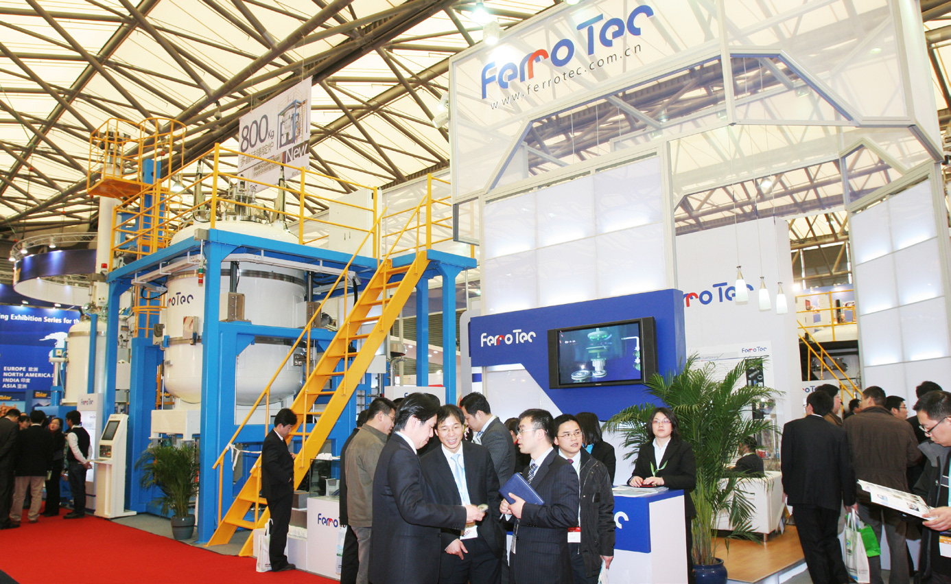 Ferrotec集團展區出現在半導體設備展區和太陽(yáng)能館之間,在135平米的空間里,800KG多晶硅爐、150KG單晶硅爐、開(kāi)方機等大型拉晶處理設備首次亮相、齊集出展,不僅是Ferrotec一次研發(fā)和制造實(shí)力的成果展示,更體現了Ferrotec在經(jīng)歷了去年的經(jīng)濟危機和行業(yè)低谷后,對于產(chǎn)業(yè)理解的不斷深化和跨越新興行業(yè)的信心和決心。而作為業(yè)內知名的半導體設備零部件供應商,這也是一次和老客戶(hù)進(jìn)行愉快接洽的良好契機。其它十余種展品還包括石英、陶瓷、真空等精密零部件、石英坩堝、石墨熱場(chǎng)等耗材到洗凈、電鍍等表面處理服務(wù)事業(yè)以至硅片和太陽(yáng)能電池片,跨越了產(chǎn)業(yè)鏈的前道和后道,吸引了眾多客商的眼球,來(lái)訪(fǎng)咨詢(xún)者絡(luò )繹不絕。