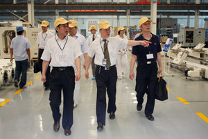 申和參觀(guān)結束,FT中國總裁賀賢漢在貴賓接待室接待了平加祥副秘書(shū)長(cháng)一行,首先賀總對客人們來(lái)FT中國工廠(chǎng)參觀(guān)表示歡迎,接著(zhù)平加祥副秘書(shū)長(cháng)介紹了這次來(lái)訪(fǎng)的目的,并介紹了廊坊市的地位優(yōu)勢、開(kāi)發(fā)區的建設、結構定位等情況,希望FT中國到廊坊投資興業(yè)。賀總向客人們也介紹了FT中國的發(fā)展趨勢,以及擴大產(chǎn)業(yè)基地的愿望,他分析了國際國內新能源行業(yè)的形勢以及我們技術(shù)、產(chǎn)品等在行業(yè)里所處的位置與份額,他說(shuō):因現在大中城市的經(jīng)營(yíng)成本居高不下,雖然有一些政策的優(yōu)勢,但是畢竟不是商家考慮的終極目標,我們正在尋找第三地開(kāi)建工廠(chǎng),現在浙江紹興、江蘇揚州已經(jīng)向我們伸出了“橄欖枝”,加之廊坊一共有三地希望我們加入,我們正在考慮三地的綜合優(yōu)勢,并希望廊坊能列出計劃進(jìn)一步商談合作的重點(diǎn),我們也會(huì )請我們的日本專(zhuān)家來(lái)進(jìn)行必要的論證,加速我們合作的步伐。平加祥副秘書(shū)長(cháng)表示回去后及時(shí)的向省市政府匯報情況,并落實(shí)下一步的技術(shù)論證合作工作。在熱情洋溢、友好融洽氣氛的會(huì )談結束后,客人們在賀總親自陪同下還參觀(guān)了上海漢虹精密機械有限公司。
