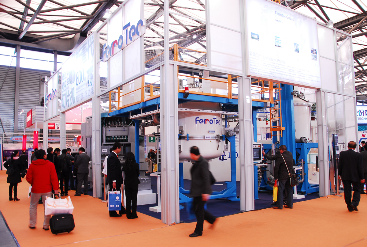 上海漢虹及FERROTEC中國相關(guān)人員都參加了本次展會(huì ),上海漢虹在整個(gè)FERROTEC中國的配合準備下,在位于現場(chǎng)E4館的225平方米的展會(huì )上,展出了單晶爐、多晶爐、開(kāi)方機、選片機、石英坩堝、石墨熱場(chǎng)以及真空磁流體部件等設施。其中上海漢虹占據市場(chǎng)大量份額同時(shí)備受好評的單晶爐多晶爐開(kāi)方機更成了場(chǎng)內的主角,在同類(lèi)市場(chǎng)產(chǎn)品中顯得格外矚目,吸引了大量的人流,新產(chǎn)品分選機、層壓機也在市場(chǎng)上一鳴驚人,針對新產(chǎn)品的推廣,我公司還提供現場(chǎng)機器運作演示,帶客參觀(guān)工廠(chǎng)等各項活動(dòng),也令漢虹為客戶(hù)留下了深刻的印象和良好的形象?,F場(chǎng)的漢虹工作人員也以著(zhù)最好的姿態(tài)向參加展會(huì )的所有客戶(hù)、同行展示著(zhù)上海漢虹最新最杰出的技術(shù)。展會(huì )三天的時(shí)間內225方分上下兩層的雙層展臺在現場(chǎng)展館內一直保持著(zhù)爆滿(mǎn)的狀況,豪華而又設計精細的展臺也吸引了眾多客戶(hù)和潛在客戶(hù)的目光,在現場(chǎng)獲得了大量的好評。