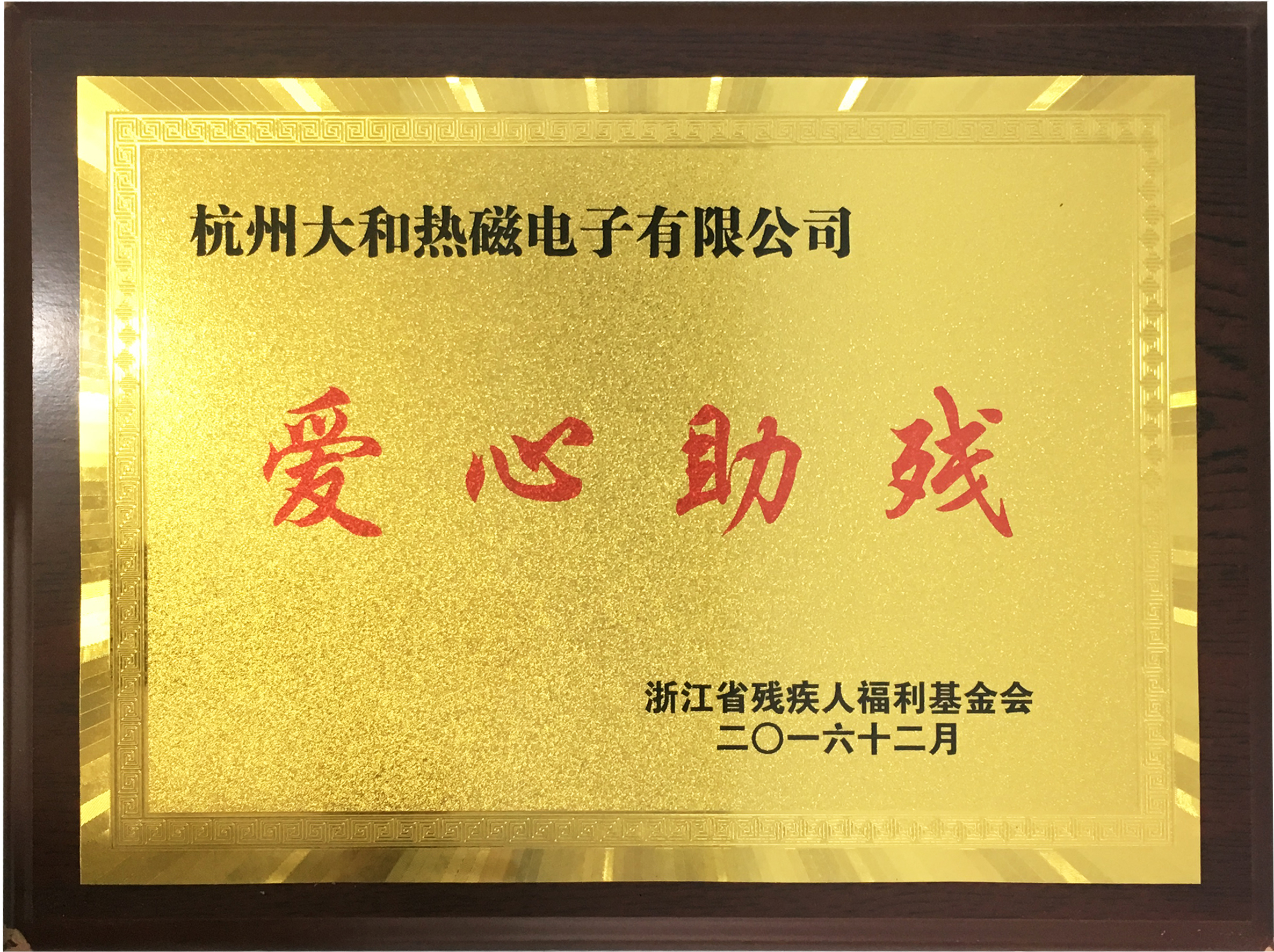 杭州大和熱磁電子有限公司獲得愛(ài)心助殘企業(yè)稱(chēng)號