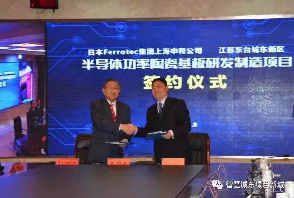 2月8日上海申和熱磁電子有限公司與江蘇省東臺市城東新區,簽署半導體功率陶瓷覆銅基板研發(fā)制造項目合作協(xié)議。本項目占地100畝,首期投資5億元人民幣,新上日本全自動(dòng)陶瓷覆銅基板制造生產(chǎn)線(xiàn)。東臺市副市長(cháng)、城東新區黨工委書(shū)記徐越,Ferrotec(中國)賀賢漢總裁出席簽約儀式。簽約儀式后,東臺市市委書(shū)記陳衛紅會(huì )見(jiàn)了雙方代表,就具體項目細節作了充分溝通交流,陳衛紅書(shū)記介紹東臺市發(fā)展定位和城東新區良好投資環(huán)境,賀賢漢在介紹Ferrotec(中國)產(chǎn)業(yè)經(jīng)營(yíng)狀況及本項目發(fā)展規劃,并希望雙方進(jìn)一步加深交流,尋找更廣領(lǐng)域的合作發(fā)展機遇。