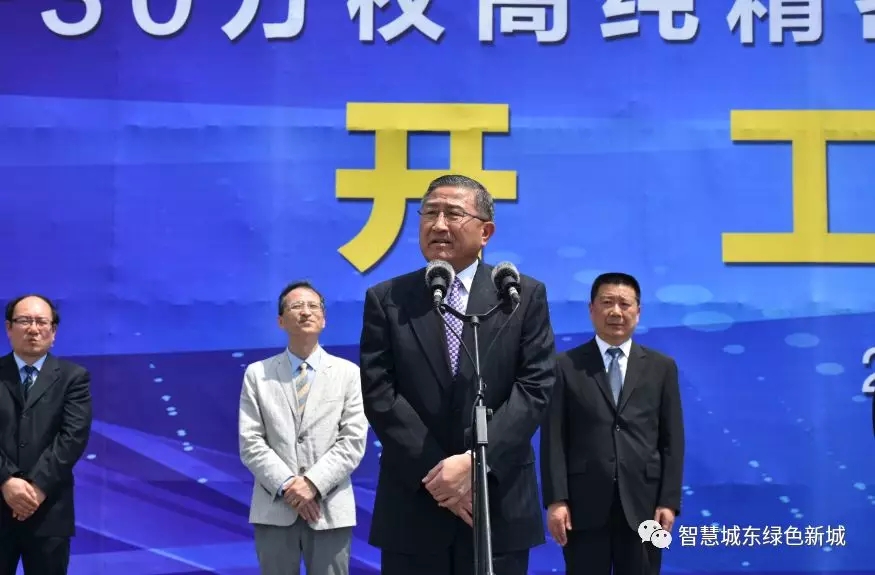東臺市市長(cháng)王旭東為開(kāi)工儀式講話(huà)