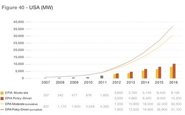 美國是惟一一個(gè)經(jīng)濟發(fā)達且能夠吸收大量光伏項目的國家,同時(shí),除了獲得支持的項目以外,許多其他公共事業(yè)項目將會(huì )被催生出來(lái)??紤]到上述所有情況,2012年美國市場(chǎng)安裝量很可能至少達到3GW,這也使得其2016年10GW目標順利實(shí)現。