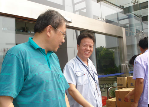 2009年8月21日上午10:30分左右,寶山城市工業(yè)園區工會(huì )領(lǐng)導蘇子清與胡琪來(lái)我公司慰問(wèn)工作在高溫一線(xiàn)的員工,為他們送來(lái)了毛巾、香皂、鹽汽水、風(fēng)油精等物品。FTS郭建岳副總經(jīng)理代表公司接受了慰問(wèn)品,并對園區工會(huì )的慰問(wèn)表示了感謝。