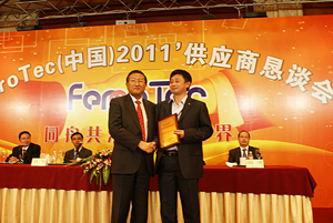 2011年Ferrotec(中國)公司供應商會(huì )議于2010年11月6日下午2:30開(kāi)始在杭州太虛湖假日酒店召開(kāi),參會(huì )供應商共計165家(其中FTH  87家,FTS 28 家,FTSM 50家),參加人員共計249人(其中FTH 126人,FTS 39人, FTSM 84人)。本屆供應商會(huì )議主題是“同舟共濟 共贏(yíng)世界”,商貿研討會(huì )按各產(chǎn)業(yè)結構分成熱電事業(yè)組、真空事業(yè)組、石英事業(yè)組、光伏事業(yè)組、石英公司、漢虹精機公司、公共綜合小組7個(gè)小組進(jìn)行溝通洽談。