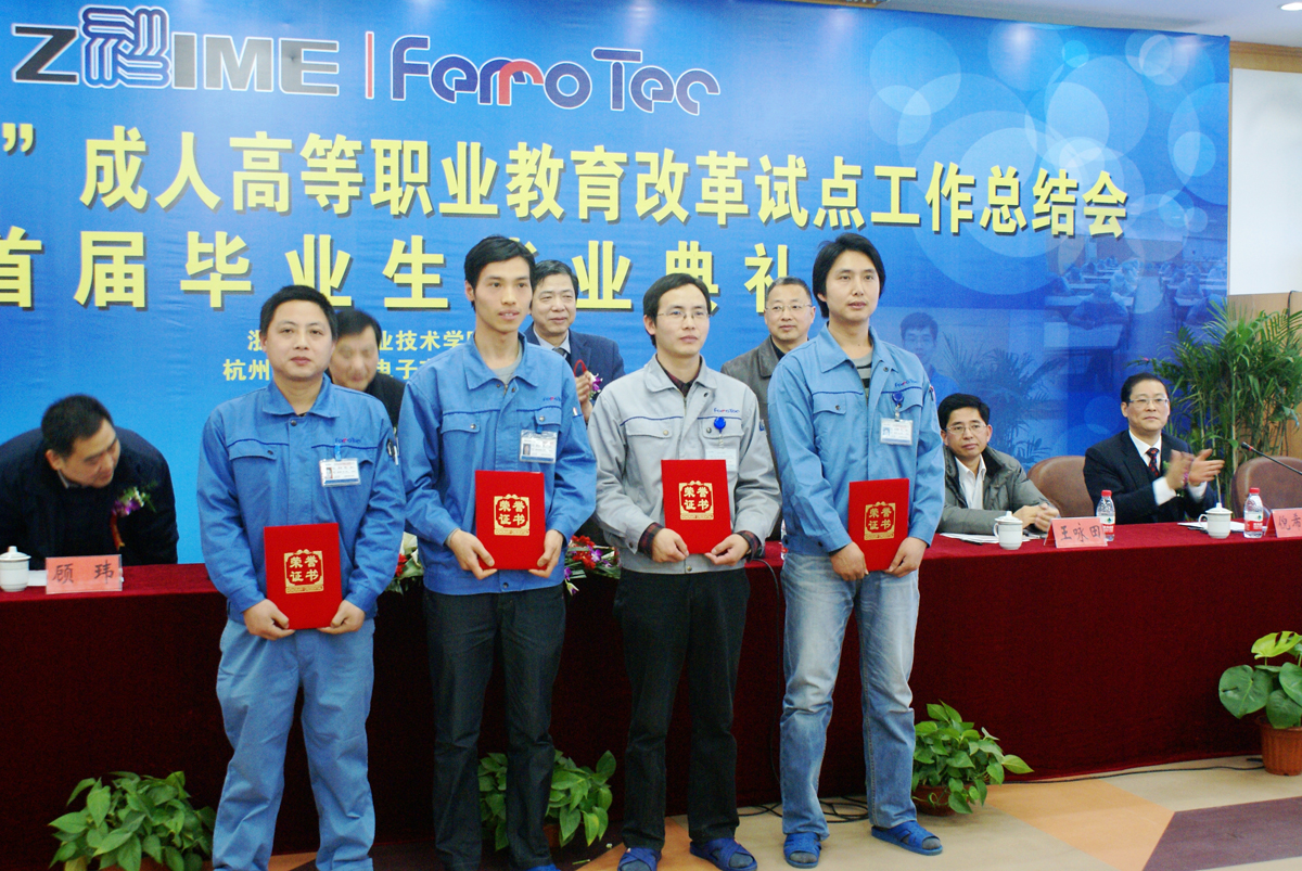 會(huì )議首先由浙江機電職業(yè)技術(shù)學(xué)院管 平院長(cháng)代表匯報改革試點(diǎn)工作情況;大和倪總代表企業(yè)做“雙元制”試點(diǎn)班的成果報告;頒發(fā)畢業(yè)證書(shū)、技師證書(shū)、優(yōu)秀學(xué)員證書(shū);優(yōu)秀學(xué)員代表發(fā)言;最后浙江省教育廳鮑學(xué)軍副廳長(cháng)做總結發(fā)言。